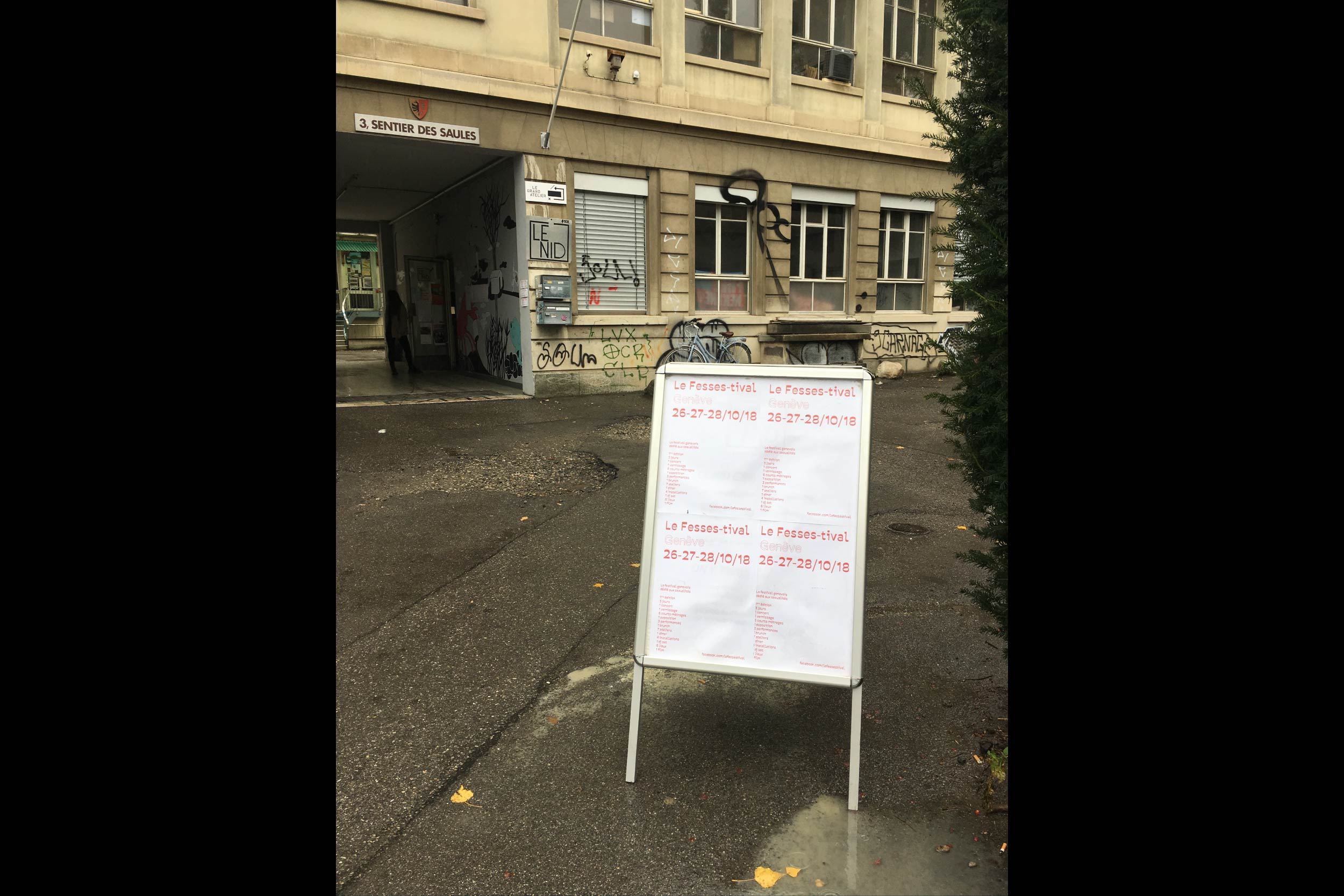 Pour ses 7 ans, le Fesses-tival prend de la hauteur, grandit, mûrit, en gardant les pieds sur terre et la tête dans les étoiles ! Dans une atmosphère hautement aérienne, le Fesses-tival a proposé 4 jours d’événements et un mois d’exposition “Satellite” qui ont gravité dans divers lieu de Genève, toujours avec amour, humour et légereté !